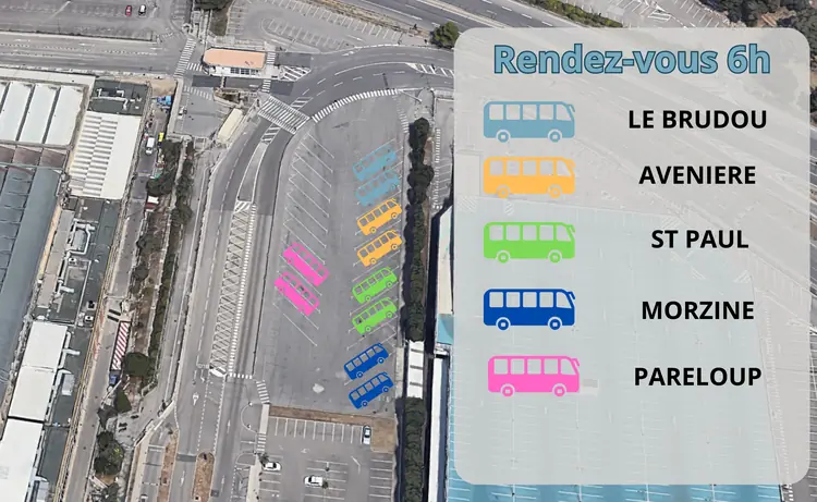 Je serai présente dès 5h30 pour préparer votre arrivée avec vos enfants. Le rendez-vous est fixé samedi 8 février à 6h sur le P0, avec un départ des bus à 6h30.